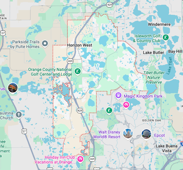 Development began in 1997 with the Lakeside village (with a Windermere zip code). Throughout the early 2000s – 2010s, slow steady growth continued. Post-2020, Horizon West has experienced explosive growth with massive population increases.